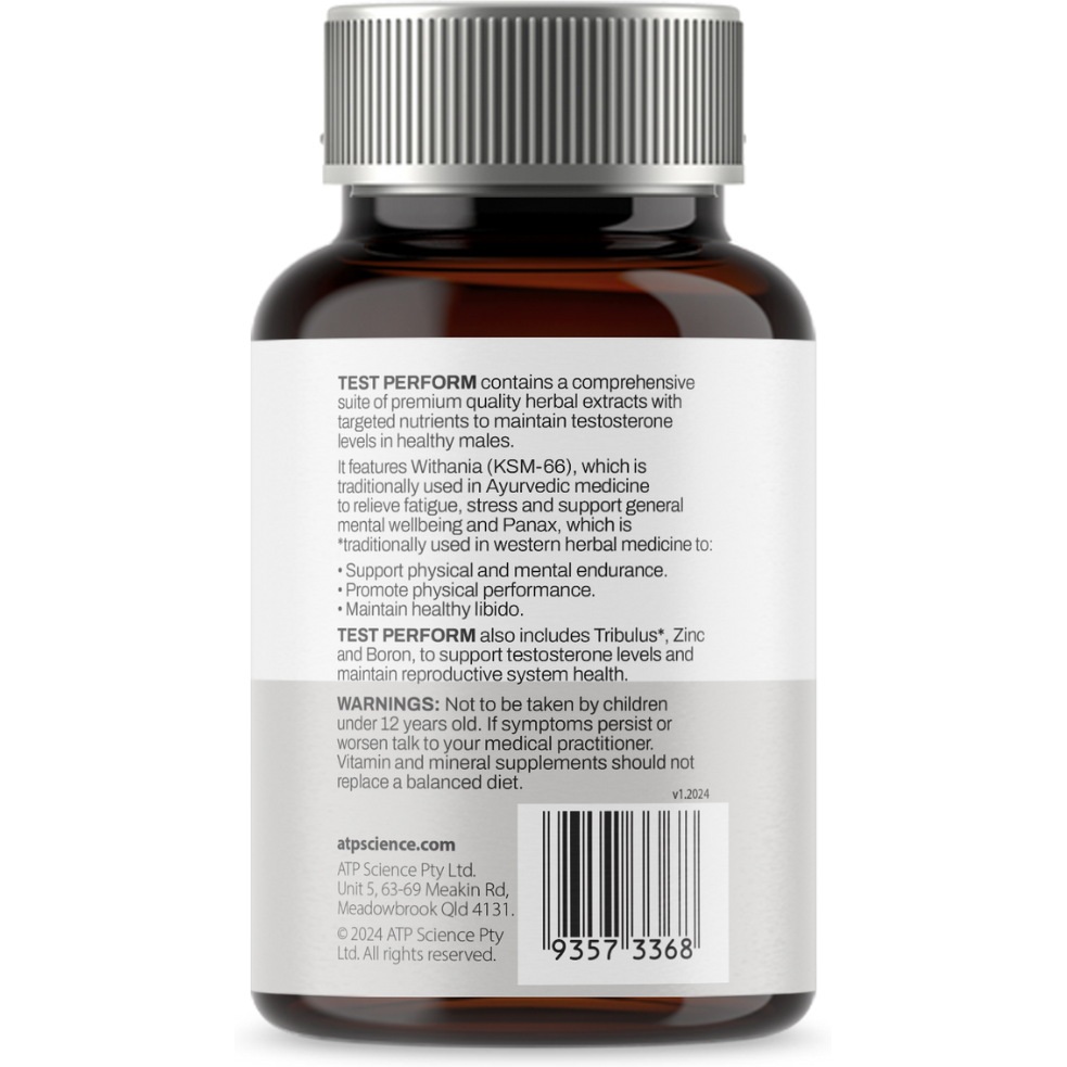 Test Perform doesn't stop there. It packs a punch with Tribulus*, Zinc, and Boron—your allies in supporting testosterone levels and optimal reproductive health. Get ready to unleash your full potential with the ultimate support that gets you on top of your game (mentally AND physically).